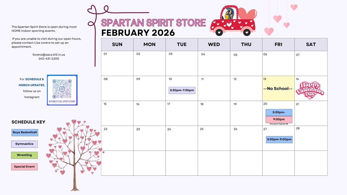 Spartan Spirit Store February Hours