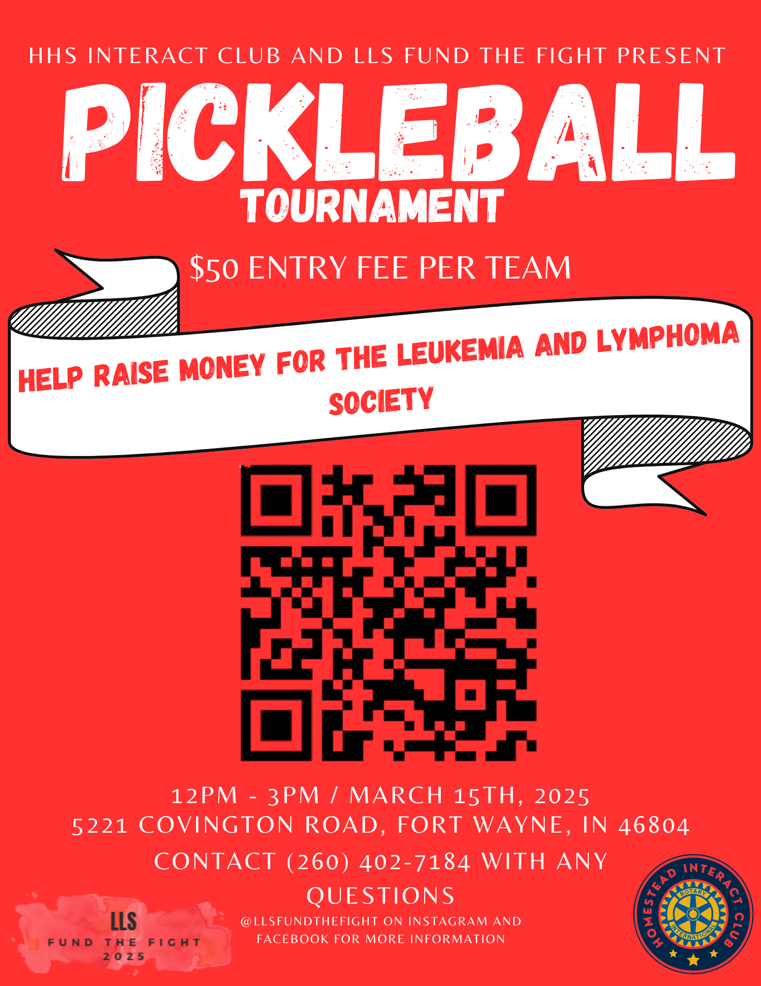 The Interact Club is hosting a charity pickleball tournament with the Leukemia and Lymphoma Society (LLS) Fight Team on March 15th from 12-3 pm at the Fort Wayne Country Club. Want to help fight cancer and play a fun game of pickleball at the same time? Sign up here. https://forms.gle/Shjg7wkQvohgD8BA9